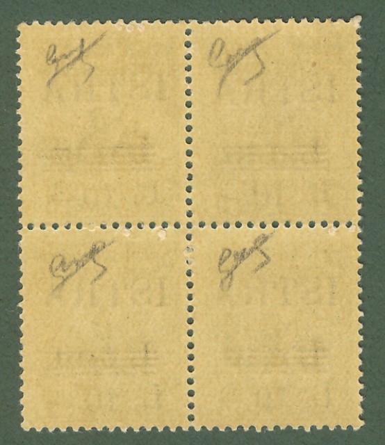 ISTRIA (Pola). OCCUPAZIONE JUGOSLAVA. Quartina nuova del 10 lire su 10 centesimi su 5 centesimi (Sassone n.39). Tutti i francobolli hanno gomma integra e sono freschi e recano la firma del perito Biondi. (Rif.C3975)