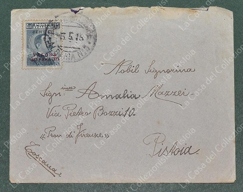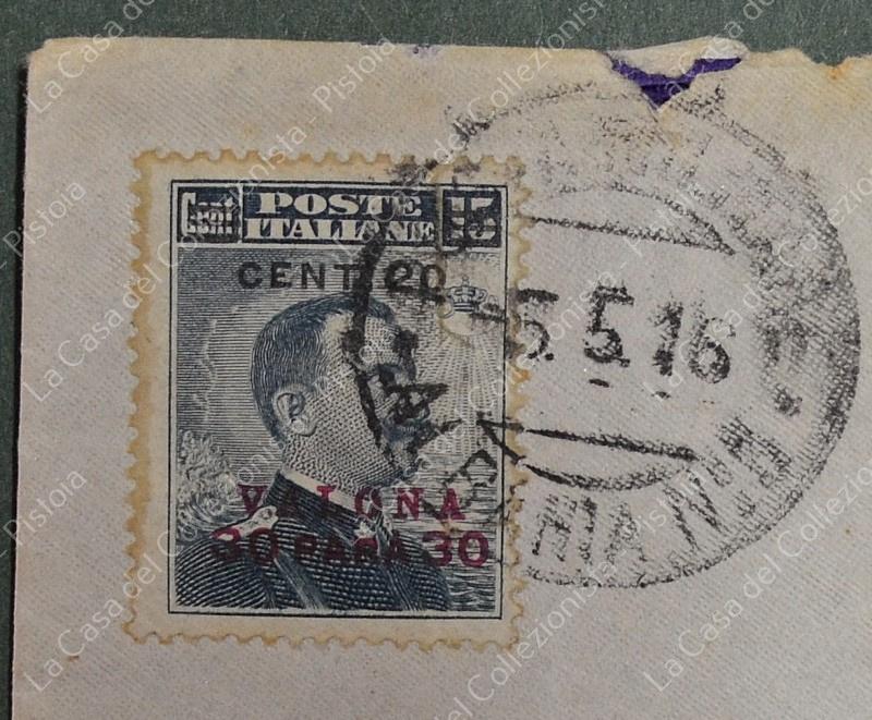 LEVANTE. VALONA. 20 centesimi...su lettera del 1916