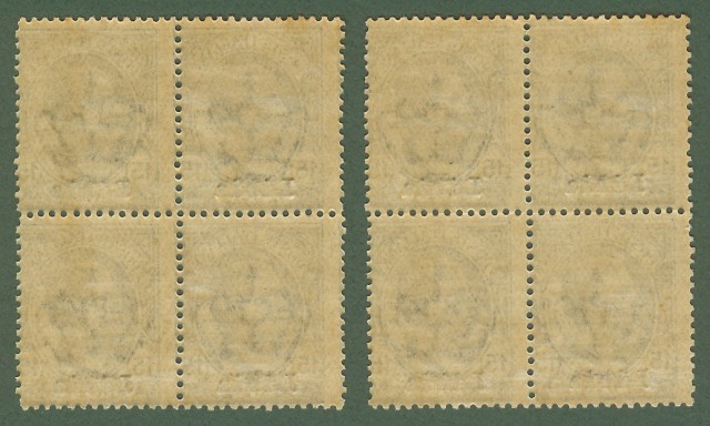 LIBIA. Centesimi 15 grigio sovrastampato (Sassone n. 33). Due quartine nuove con gomma integra e freschissime. (Rif.B4664)