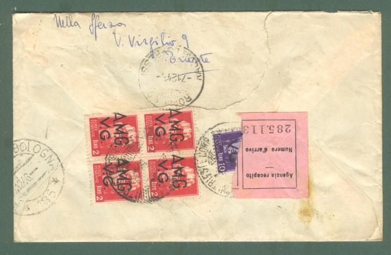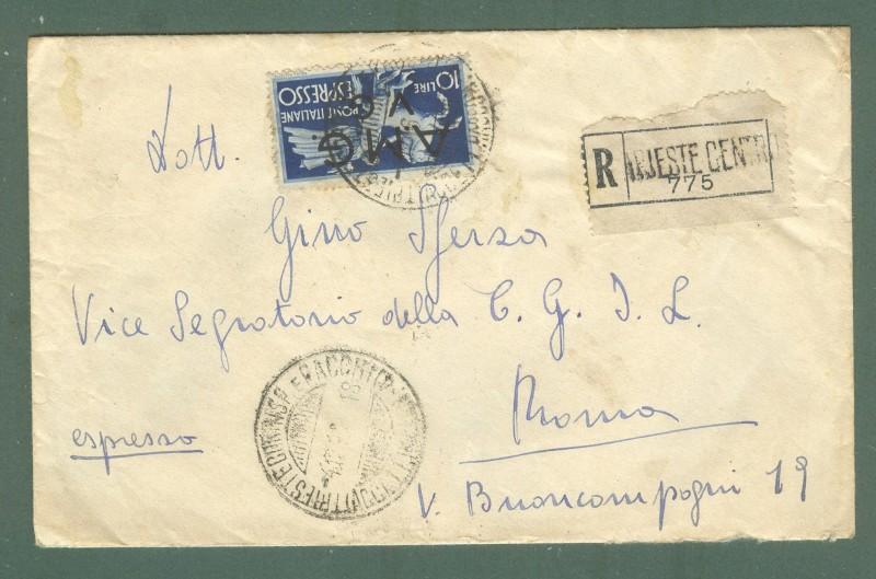 Storia postale colonie e occupazioni. TRIESTE - VENEZIA GIULIA. Lettera doppio porto raccomandata espresso da Trieste a Roma del 4.12.1946.