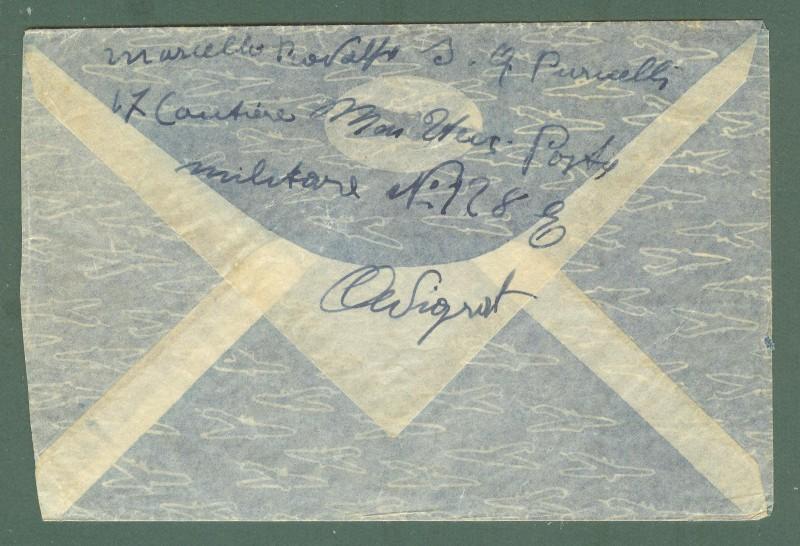 Storia postale. ERITREA. Cent. 35 violetto + lire 1 grigio (Sassone 208 e 209) su aerogramma del 1936 dalla Posta militare 128 E. Buona qualità. (Rif.D4771)