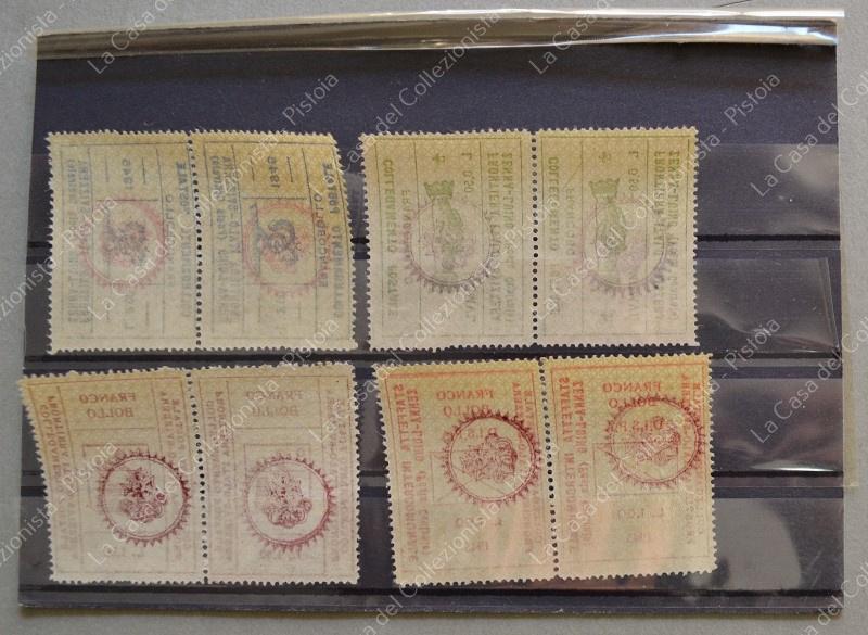 1945. SERVIZI DI RECAPITO COMUNALI. D. I. S. I. A. (Delegazione intercomunale servizio postale). 2 serie complete di quattro valori. A retro bollo violetto di controllo. Gomma integra. Freschissime. (Rif.F6371)