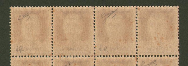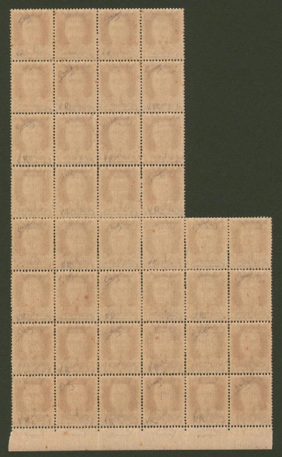 R.S.I.. SOVRASTAMPA ROSSO ARANCIO. Cent. 30 bruno soprastampato (Sassone 492 E). Blocco di 40 pezzi. Firmati dal perito Biondi. Alcuni punti di ingiallimento sulla colla. (Rif.C2937)
