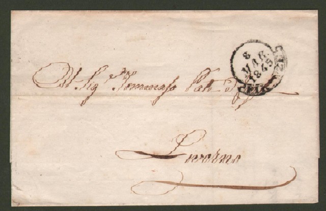 Prefilatelica. TOSCANA. Lettera del 8 marzo 1845 da Firenze a Livorno. Due bolli d'arrivo diversi apposti a Livorno. Senza testo. (Rif.C9462)