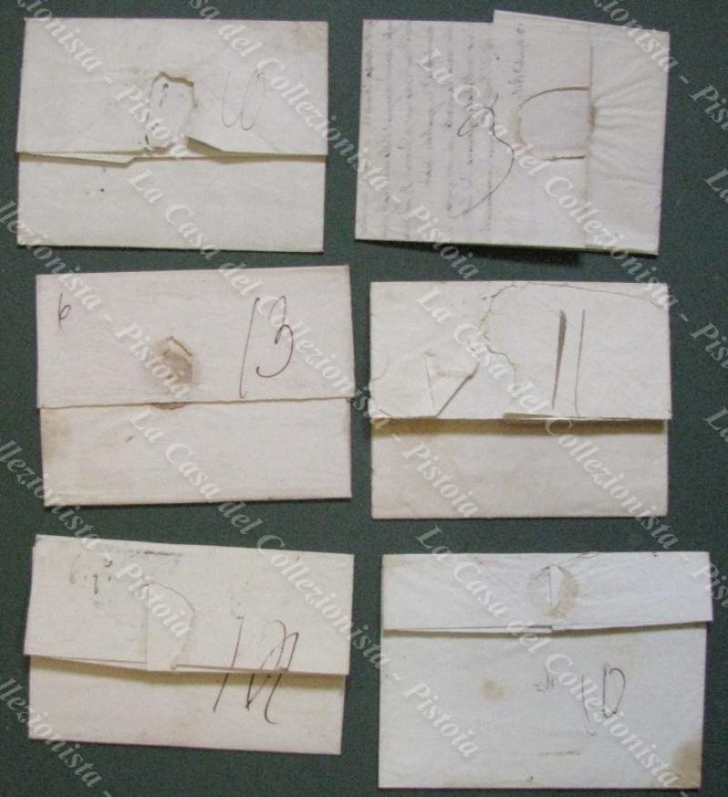 LIGURIA, PIEMONTE, TOSCANA. 6 lettere per Prato da: Novi (2 lettere senza testo), Valenza (senza testo), Genova (2 lettere, una con testo anno 1818). Segni di tassa. (Rif.E5453)