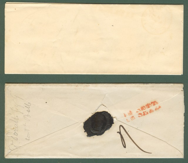 PIEMONTE. VERCELLI doppio cerchio nero + P.P. VERCELLI in rosso su lettera per Torino del 11 settembre 1849. Completa del testo, ottima qualità. (Rif.C4209)