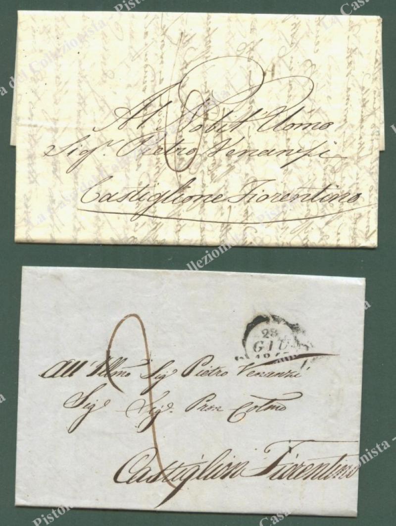Prefilatelia. TOSCANA. 2 lettere del 1842 e 1845 da Firenze a Castiglion Fiorentino.