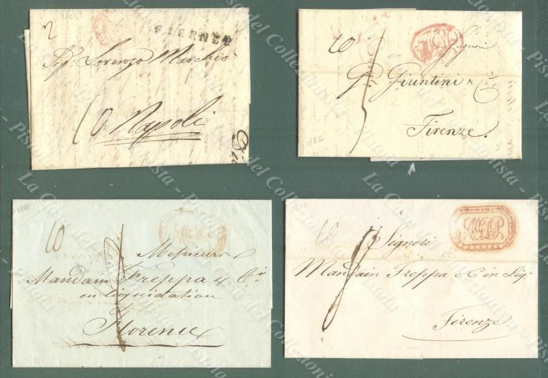 TOSCANA-CAMPANIA. 4 lettere. Tre (1826-1841) da Napoli a Firenze (due senza testo); una (1823) da Firenze (completa del testo) a Napoli. Buona conservazione. (Rif.E5456)
