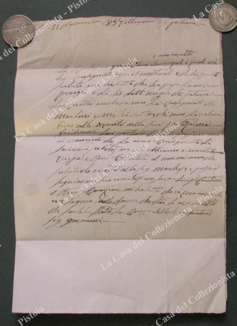 TOSCANA. STRADA FERRATA MARIA ANTONIA. Trenino in ovale azzurro (un poco leggere). Lettera per Firenze del 21 Novembre 1857. Completa di testo. (Rif.E2287)