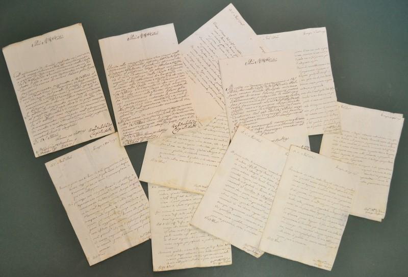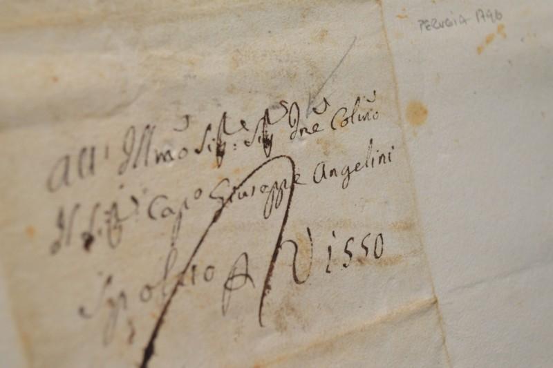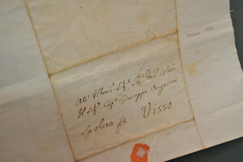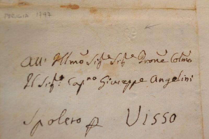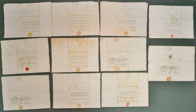 UMBRIA. Bollo a secco "spade incrociate" dell'appaltatore postale. 11 lettere del 1795/1797 per Visso da Roma (2) e Perugia (9). Complete del testo. (Rif.D9767)
