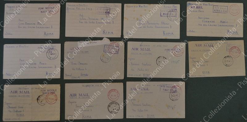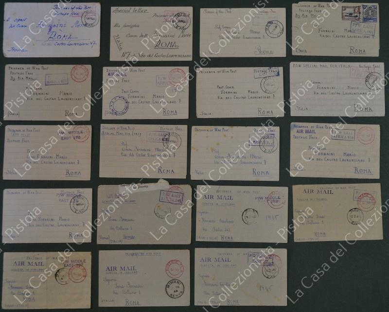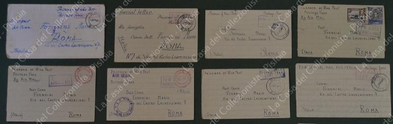 SECONDA GUERRA. PRIGIONIERO DI GUERRA ITALIANO IN AFRICA ORIENTALE. Unica corrispondenza. 19 lettere per Roma tra il 13 aprile 1942 ed il 15 marzo 1945. Complete del testo. Bolli vari di posta e censure. Conservazione ottima. (Rif.F7822)