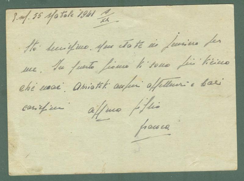 POSTA MILITARE. SECONDA GUERRA. Cartolina in franchigia per Napoli dalla Posta Militare 55 (Libia, natale 1941) inoltrata a mezzo FELOPOST. Ottima conservazione. (Rif.D4760)