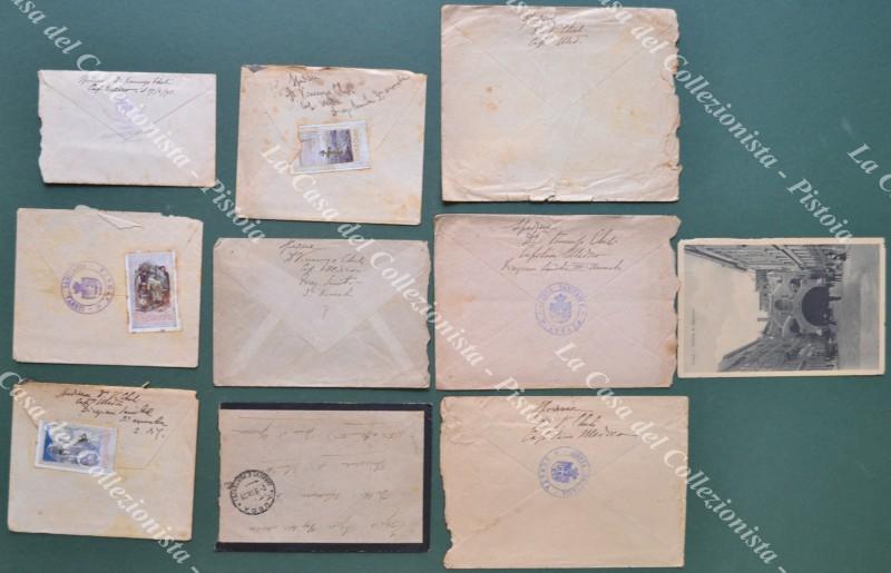 PRIMA GUERRA, posta miliatre. P.M. 130. Nove lettere ed una cartolina. 2 affrancate con francobolli delle terre redente. Non è presente la corrispondenza. (Rif.F3378)