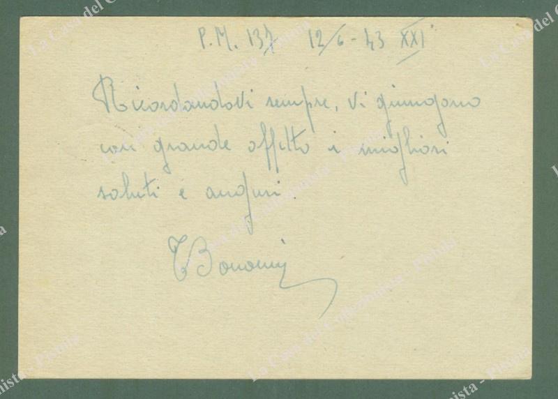 SECONDA GUERRA. POSTA MILITARE 137 SEZ.A. Bollo nero su cartolina in franchigia del 12.6.1943. (Rif.E2258)