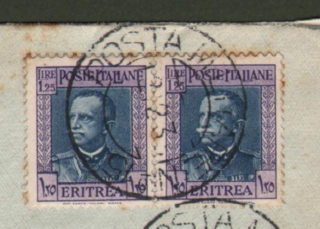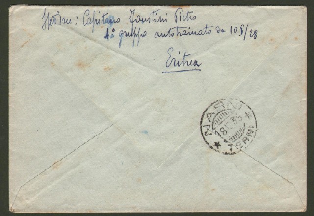 Regno. GUERRA D'AFRICA. POSTA MILITARE N. 15 annullatore di due pezzi lire 1,25 Eritrea su lettera aerea del 12.12.1935 per Narni.
