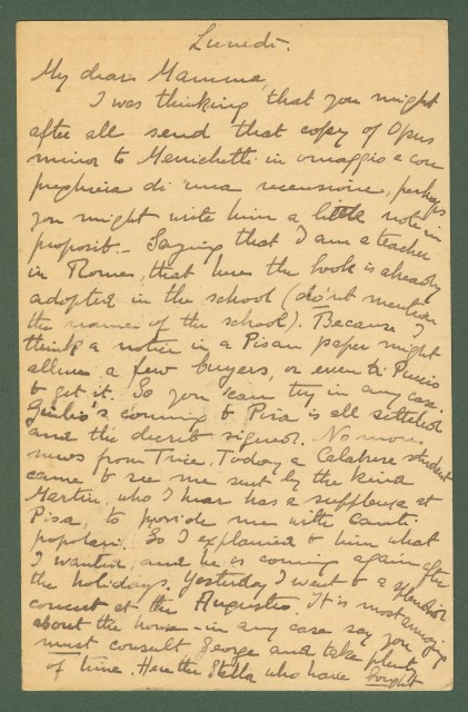 INTERI POSTALI. Cartolina postale da cent.30 bruno arancio tipo Michetti (millesimo 1923) da Roma a Pisa 12.12.1923. Tassello pubblicitario FRANCESCO DE CAPITANI. Ottima conservazione. (Rif.B8786) Storia postale Regno