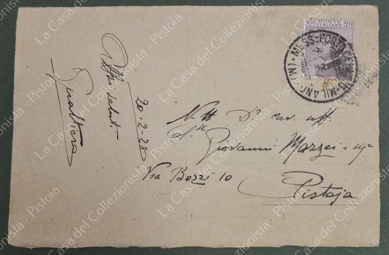 AMBULANTE FERROVIARIO. MESS. PORTO CERESIO MILANO (M). Cartolina del 1928