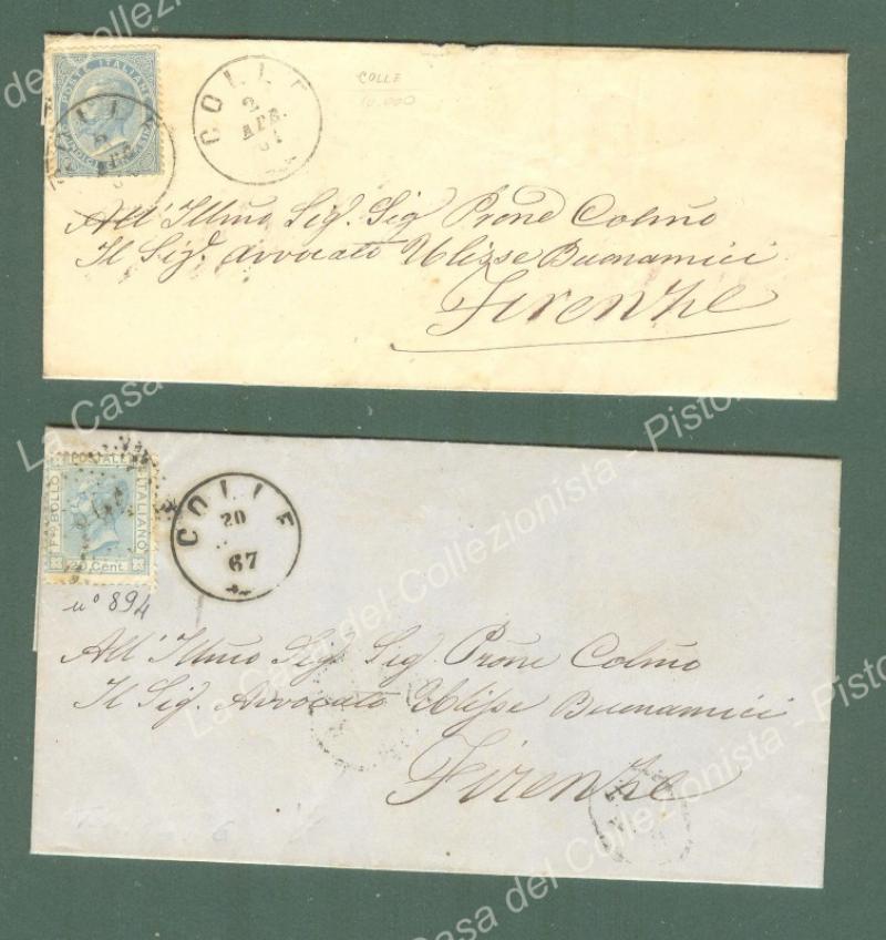ITALIA REGNO. Annullo sardo italiano di Colle. Due lettere complete del testo del 1867