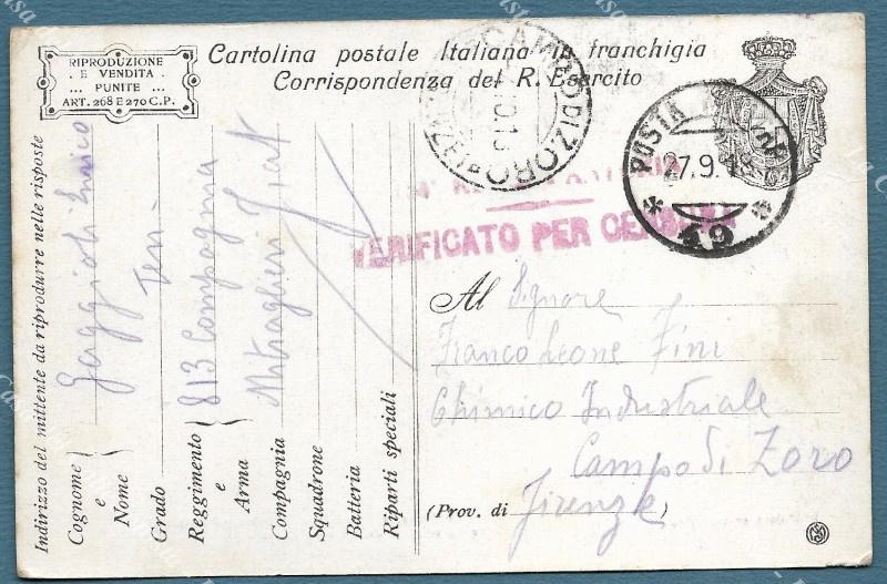 RAVAGLIA 1918. Cartolina d'epoca in franchigia viaggiata in P.M. 49. Rara. (Rif.F3690)
