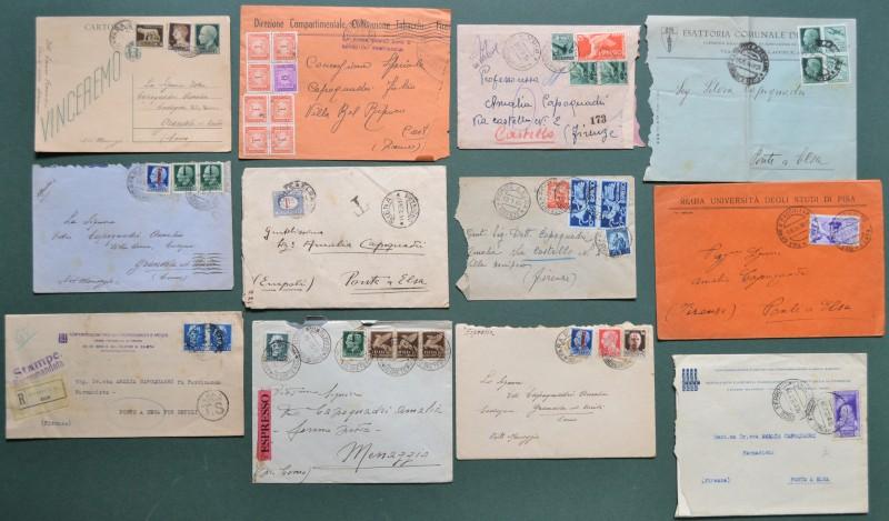 REGNO - R.S.I. - REPUBBLICA. 12 tra lettere, espressi e raccomandate (unico destinatario), periodo 1934 - 1949. Qualche imperfezione alle buste, ma francobolli senza difetti. (Rif.D9006)