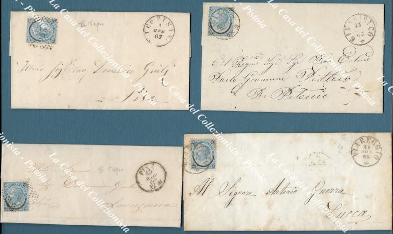REGNO. TOSCANA, 4 lettere (da Giuncarico, Viareggio, Pisa e Vicopisano) del 1865 - 1867. Affrancate con cent. 20 su cent. 15