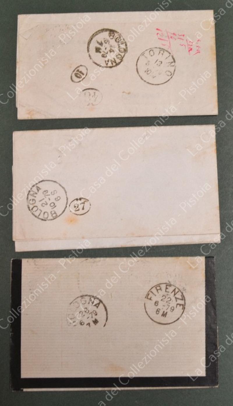 St. postale. REGNO ITALIA. Francobolli di servizio soprastampati. 3 partecipazioni del 1879