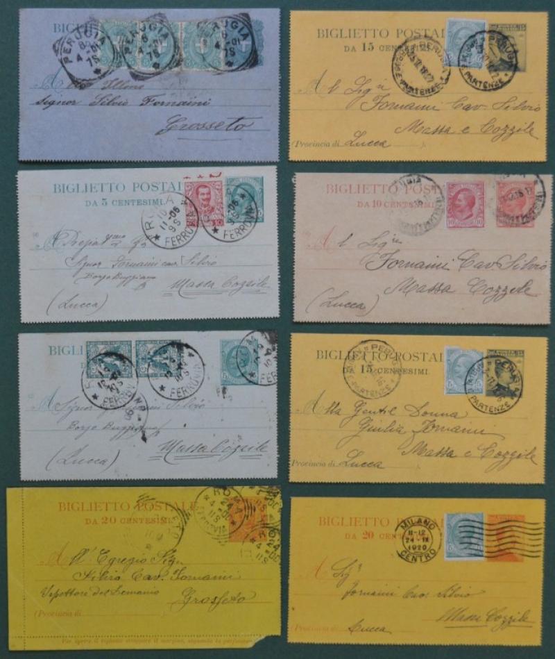 Storia postale Regno. 8 biglietti postali. 1900 - 1912. Buona qualità. (Rif.F6870)