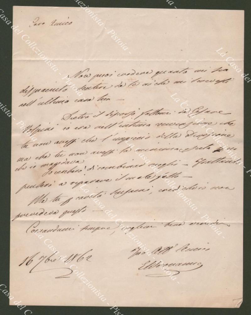 Storia postale REGNO D'ITALIA. Centesimi 10 bistro dentellato (Sassone n.1) su lettera del 16.9.1862