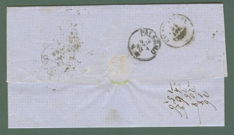 Storia postale. REGNO D'ITALIA. Lettera del 1868 da Riesi (Caltanissetta) a Palermo...