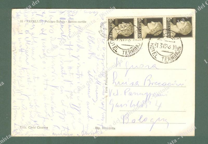 Storia postale Regno. HOTEL TERMINUS. Guller nero annullatore su cartolina del 1939. (Rif.E1071)