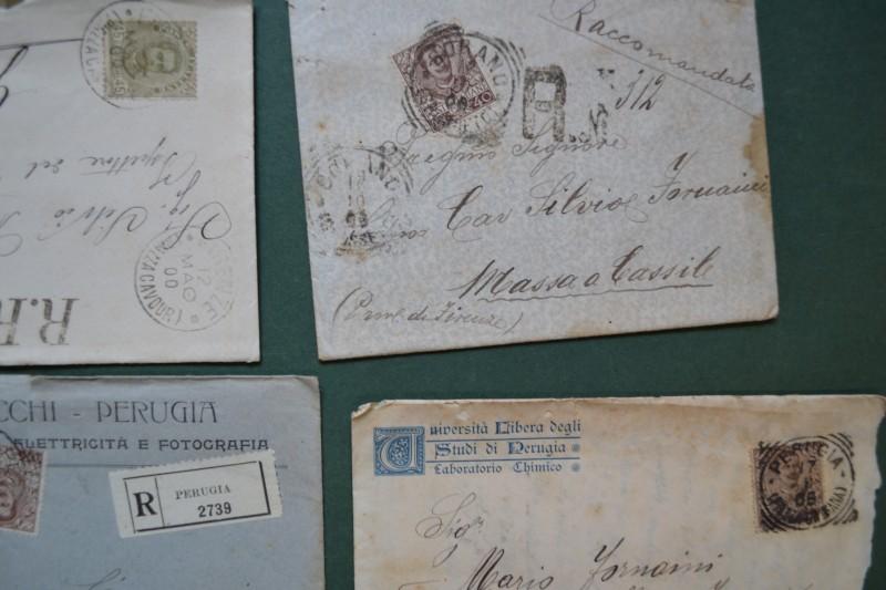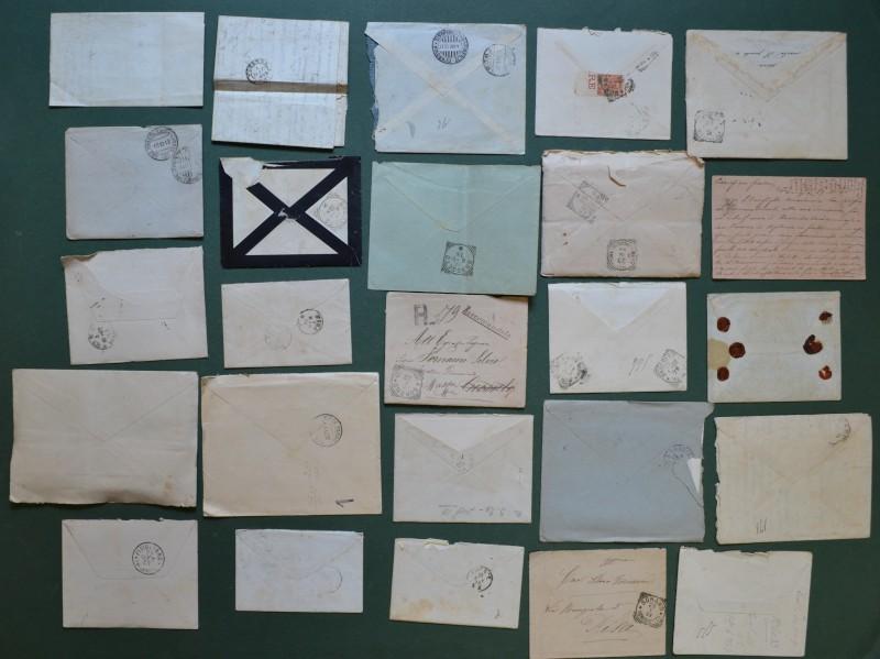 Storia Postale, Regno. Insieme composto da 22 tra lettere, raccomandate ed espressi (unica corrispondenza), una lettera del 1852 da Bologna a Firenze ed una parte di lettera del 1854 da Venezia a Perugia. In tutto 24 pezzi,. (Rif.F7007)