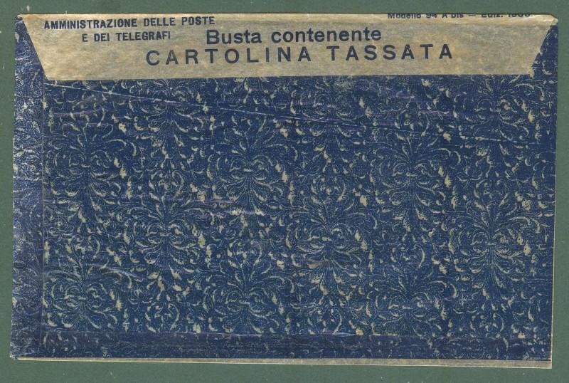 Storia postale. REGNO. Modello 94 A bis del 1903 delle Poste; (segnatasse da cent. 10 su un lato). ancora perfettamente integro; la cartolina non è più presente. Non comune. (Rif.D4750)