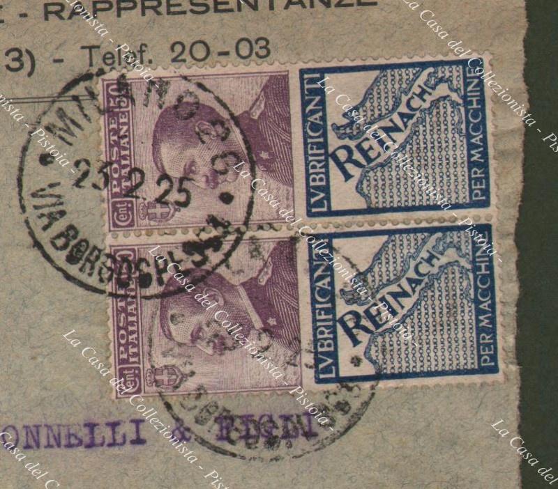 Storia postale Regno. PUBBLICITARI. Lettera raccomandata del 23 febbraio 1925 da Milano a Firenze. Coppia cent.50 violetto REINACH