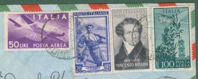 REPUBBLICA * AEREOGRAMMA - 24.03.1952 da Claut (Udine) a San Paolo in Brasile. Affrancato con lire 20 Italia Lavoro + lire 20 Bellini + lire 50 Posta Aerea Democratica + lire 100 Posta Aerea Campidoglio. Francobolli ben dentellati, qualità ottima. (Rif.C5357)