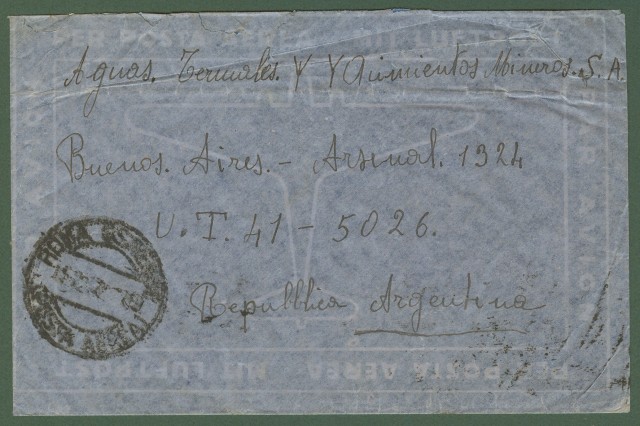 Repubblica. Aerogramma. Lettera del 15.2.1947 da Roma per Buenos Aires.