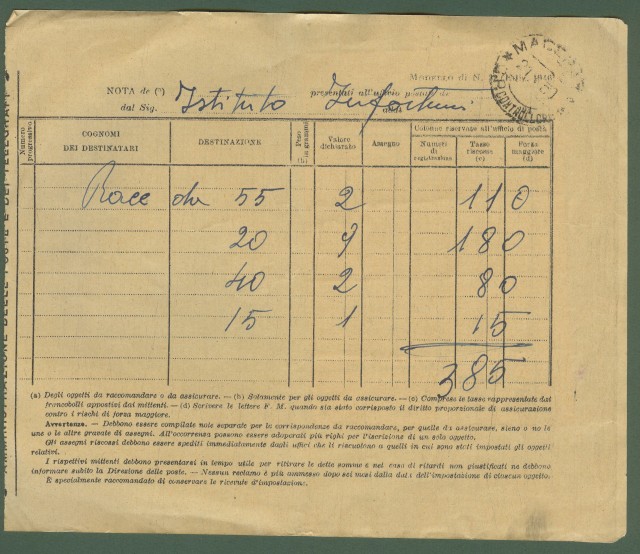 Repubblica. Modello n. 32 delle Poste.