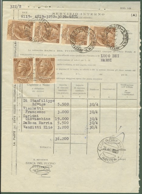 Italia Repubblica. Incasso conto terzi del 28.4.1956