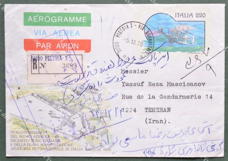 AEROGRAMMA RACCOMANDATO del 5.10.1979 per Teheran (Iran). Ritornata al mittente. (Rif.F3445)