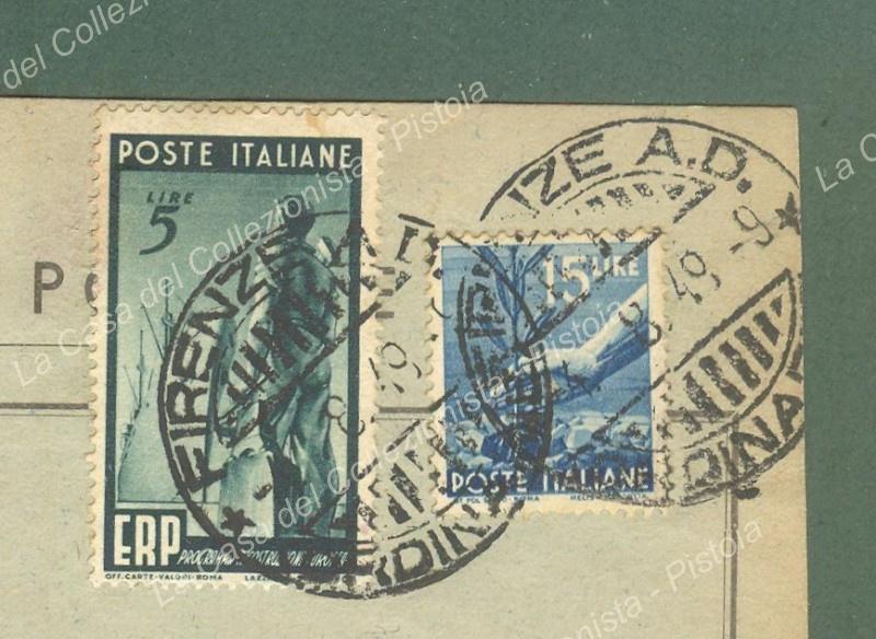 ITALIA REPUBBLICA. Lire 5 ERP + lire 15 Democratica su avviso di ricevimento del 3.8.1949. Francobolli ben dentellati. (Rif.E4277)