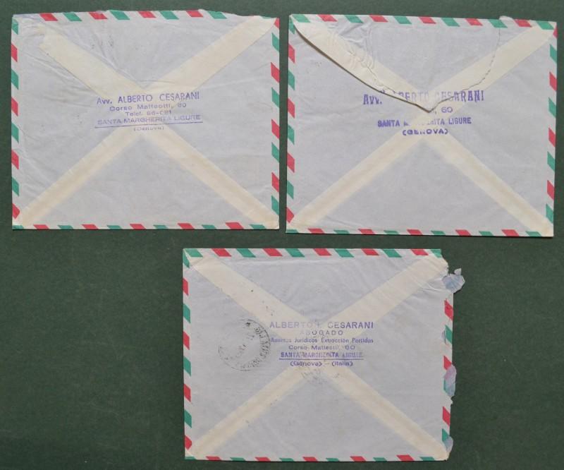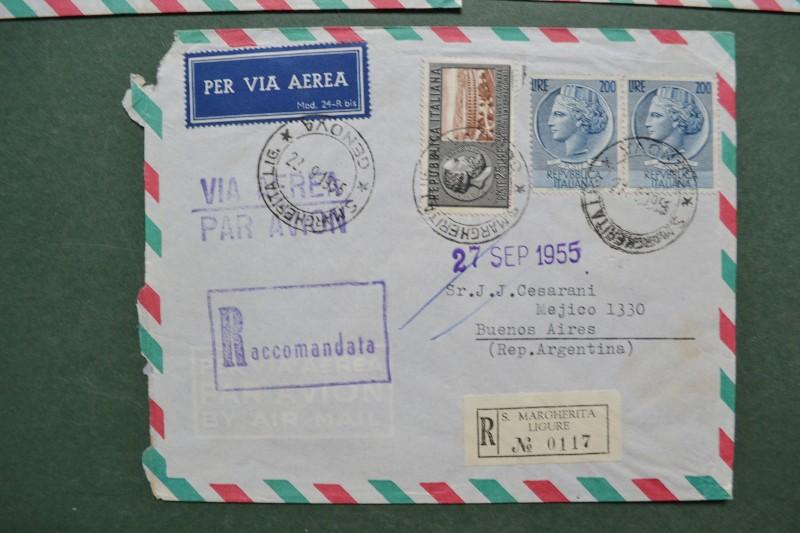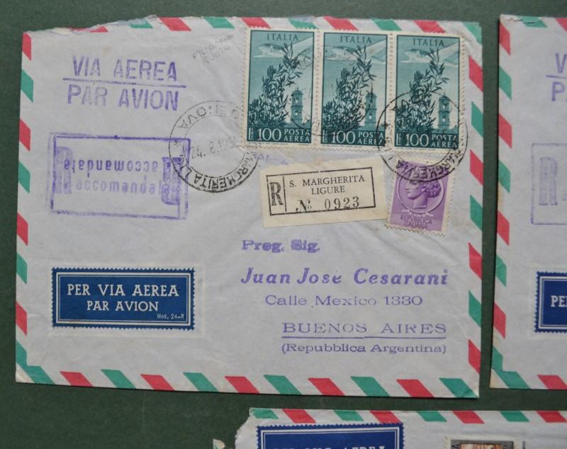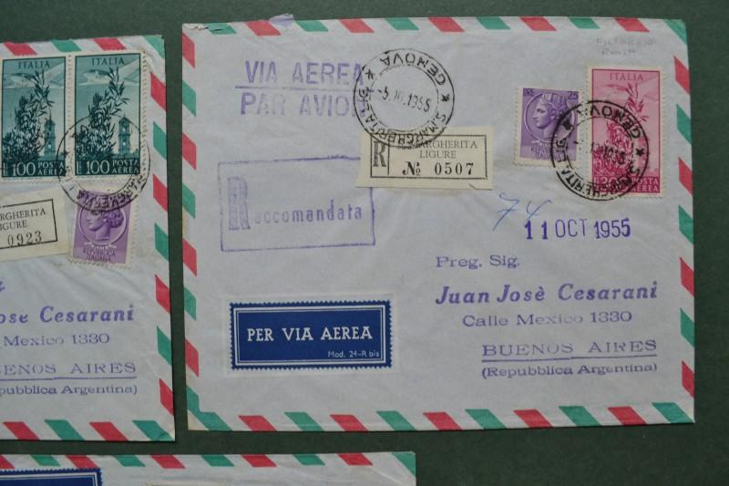 Storia postale Repubblica. 3 RACCOMANDATE AEREE per l'Argentina del 1955/56. I valori da 100 e 300 hanno filigrana ruota.