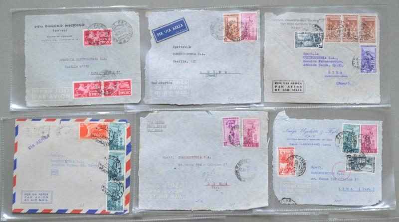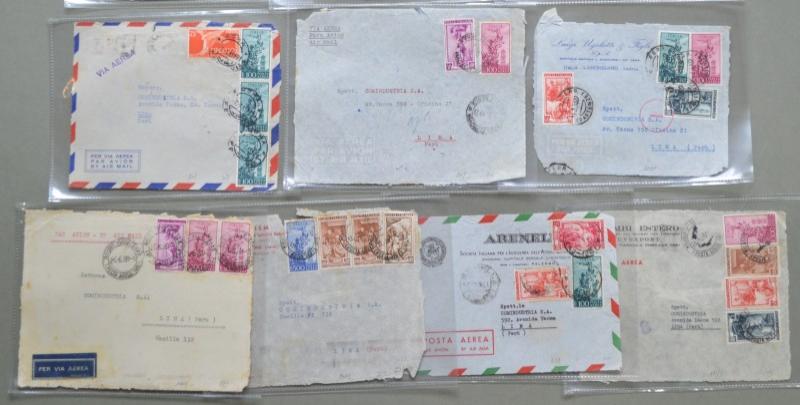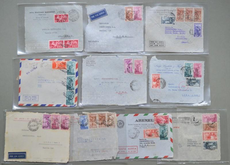 Storia postale. REPUBBLICA ITALIANA. Blocco di 10 frontespizi di aerogrammi diretti a Lima in Perù. Periodod 1951 - 1953. (Rif.D5481)