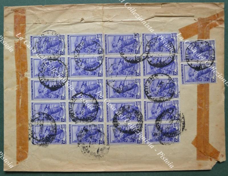 Storia postale Repubblica. LETTERA interna a Milano del 1950 affrancata con 22 pezzi del lire 20 Italia al Lavoro.