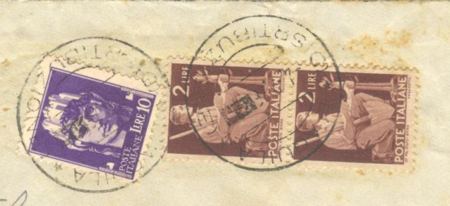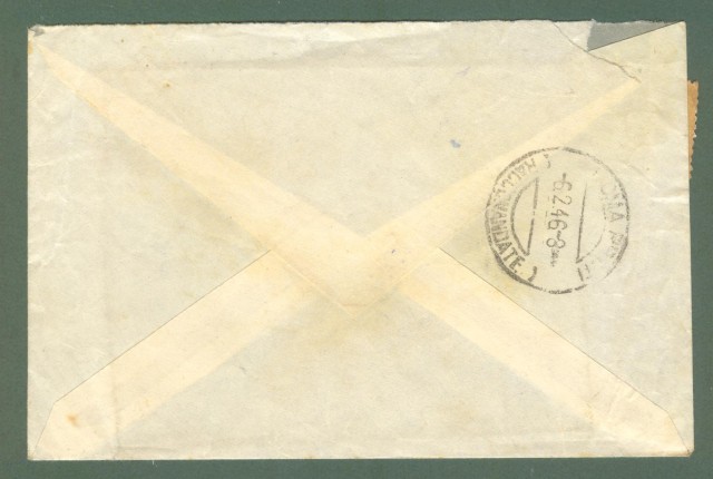 Storia postale ITALIA LUOGOTENENZA. Raccomandata del 04.02.1946 da Aquila a Roma. Affrancata con lire 10 Imperiale + coppia lire 2 democratica. Francobolli ben dentellati. (Rif.C9068)