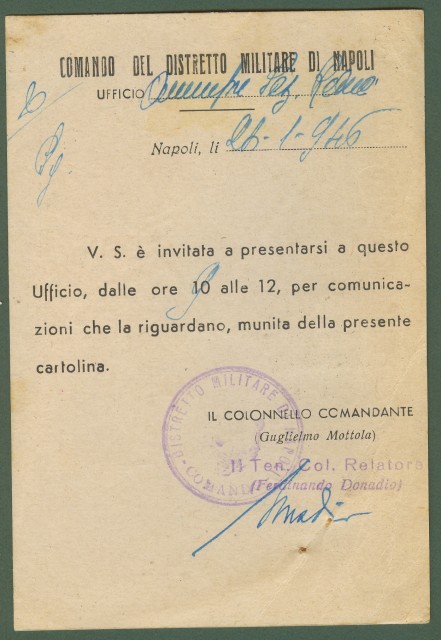 Luogotenenza. TASSA A CARICO. Cartolina del 25 gennaio 1946 interna a Napoli.