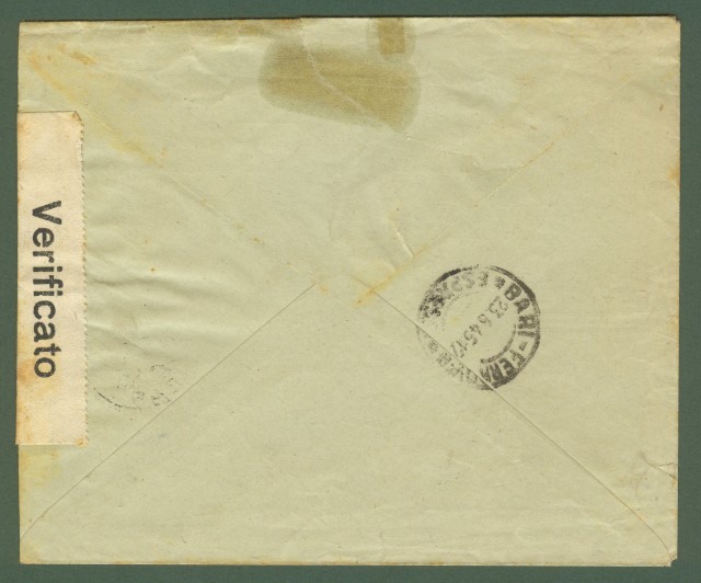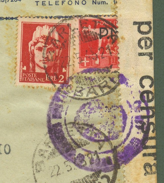 LUOGOTENENZA. Lettera espresso del 22.5.1945 da Barletta a Bari.