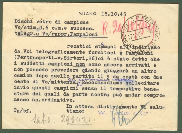 Luogotenenza. Lettera espresso del 15.10.1945
