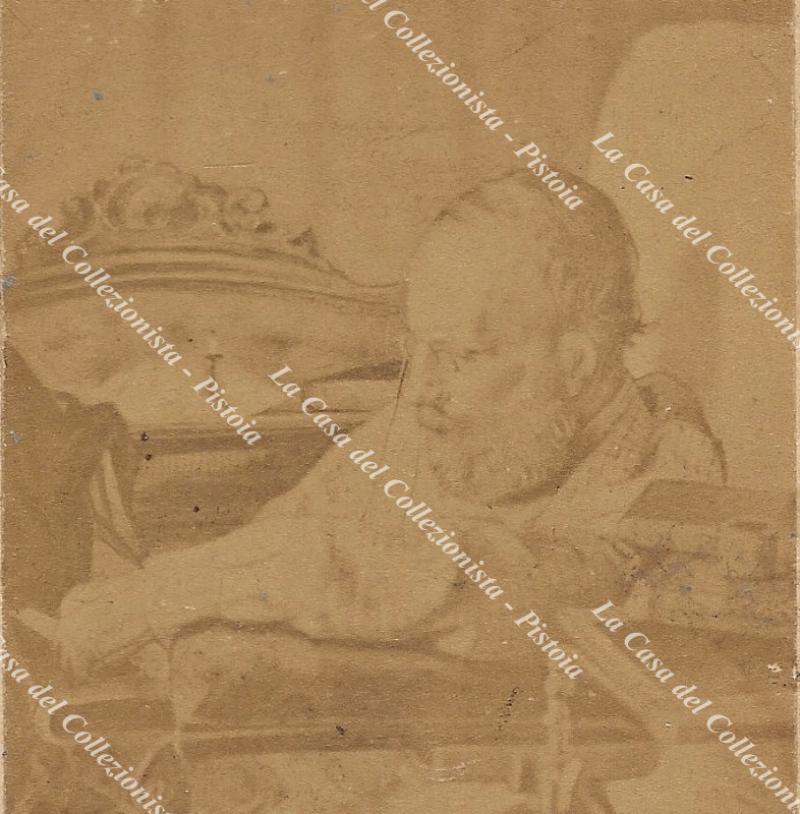 GARIBALDI GIUSEPPE raffigurato seduto su una poltrona. Foto all’albumina di mm 57x90 su cartoncino di Muller a Torino di mm 61x105. Piccole imperfezioni, circa 1880. (Rif.F0875-116/76)