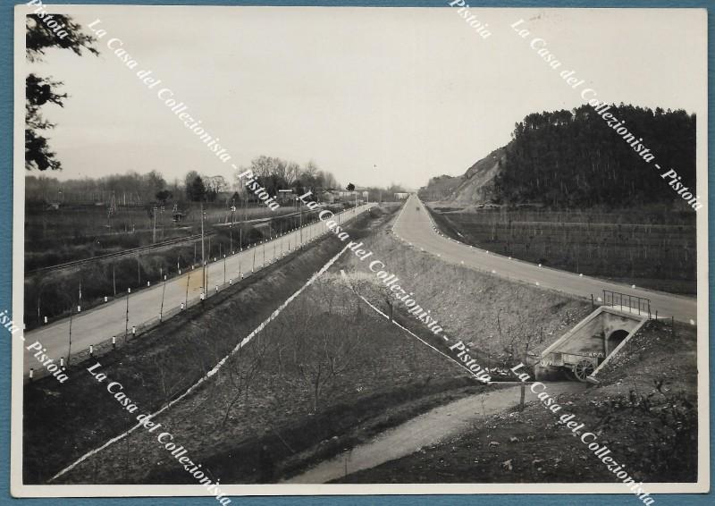 AUTOSTRADA FIRENZE - MARE. 2 foto originali dello Studio G. Vestri di Montevarchi. Ciascuna cm 17x12, anni '30. Una raffigura tratto tra Lucca e Migliarino, l'altro il casello d'arrivo a Migliarino. Conservazione ottima. Rare. (Rif.F6692)