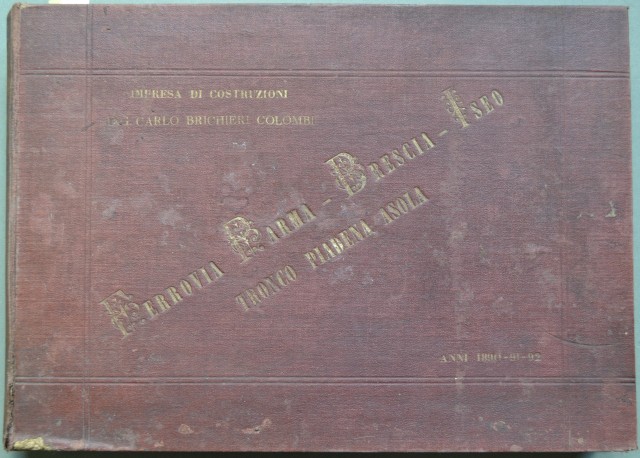 FERROVIA PARMA - BRESCIA - ISEO. TRONCO PIADENA - ASOLA. Anni 1890 - 91- 92. Impresa di costruzioni Ing. Carlo Brichieri Colombi. Album di cm 31x22 rilegato in tela con impressioni in oro al piatto anteriore (ancora solida ma con segni d'usura e piccol