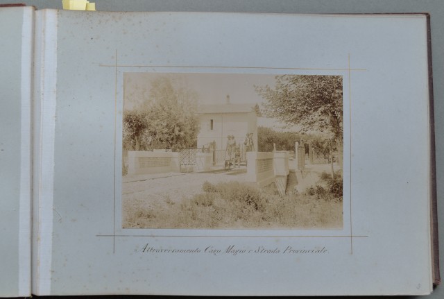 (Ferrovia - Lombardia - foto d'epoca) FERROVIA PARMA - BRESCIA - ISEO. TRONCO PIADENA - ASOLA. Anni 1890-91-92. Impresa di costruzioni Ing. Carlo Brichieri Colombi. Album di cm 31x22 rilegato in tela con impressioni in oro al piatto anteriore (ancora solida ma con segni d'usura e piccoli danni). All'interno 38 fotografie all'albumina, ciascuna di cm 16,2x12, applicate al recto su altrettanti cartoncini di cm 30x21,3. Documentano il tratto ferroviario Piadena-Asola dall'inizio del tronco alla stazione di Asola (ponti, strade attraversate, sottopassaggi, stazioni). Ogni fotografia è animata da una o più persone. Conservazione buona. Insieme raro. (Rif.C5930-599/61)